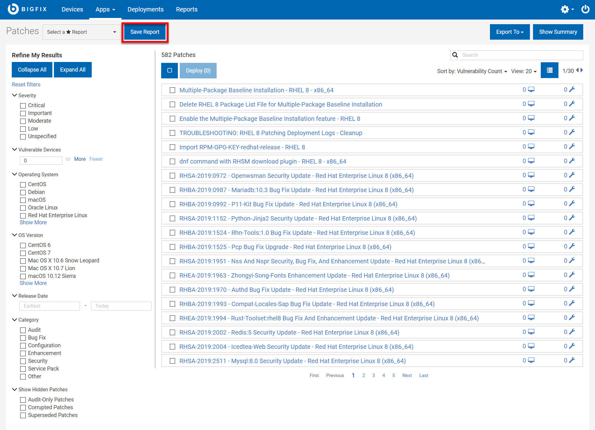 With WebUI Reports, you can create custom reports to obtain more specific information about devices, patches, and deployments of the endpoints.
