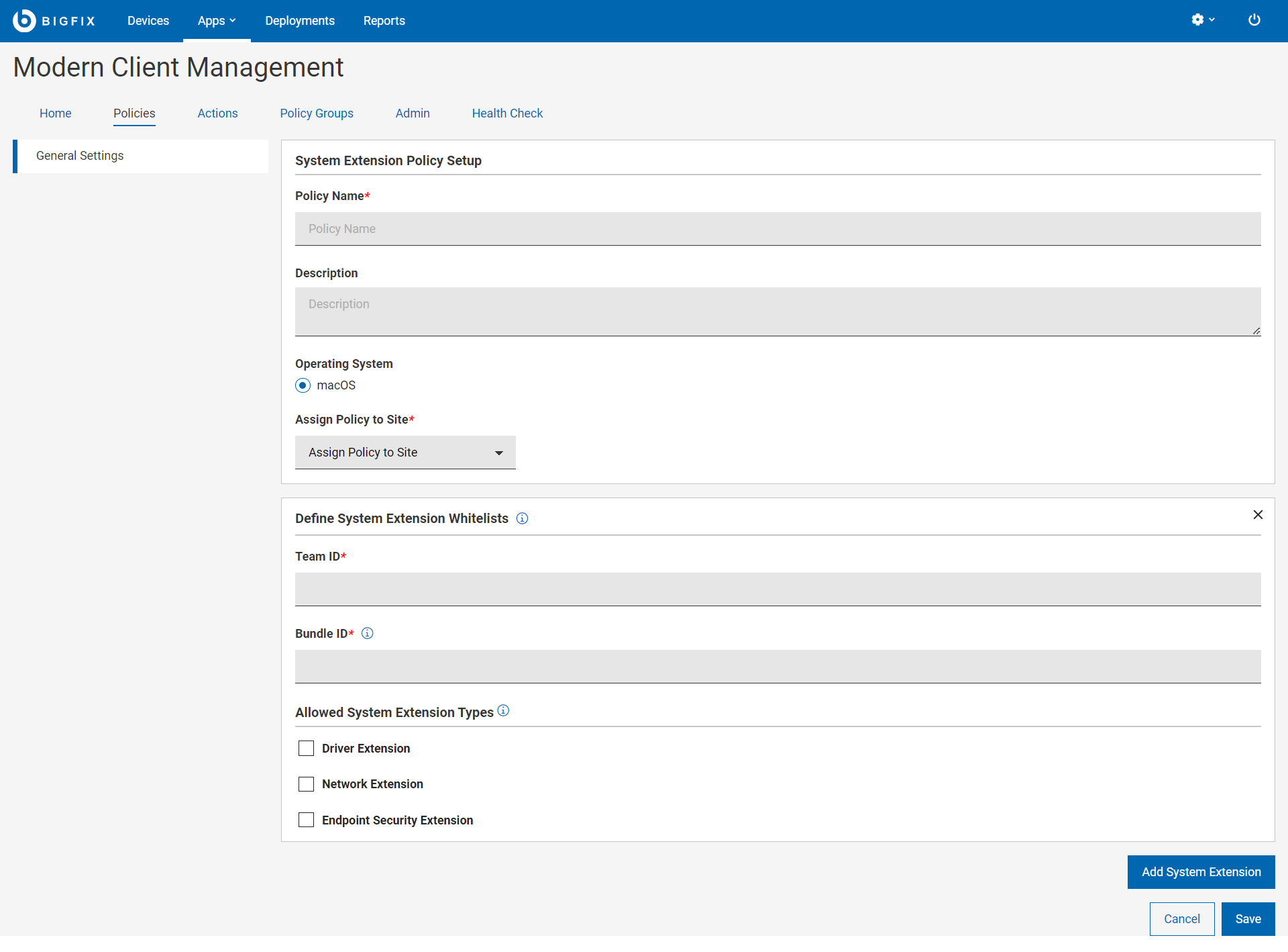 - Add System Extension: If you want to whitelist more than one product from different vendors within a single policy, click Add Extension to add additional Team ID and Bundle IDs to the same policy.