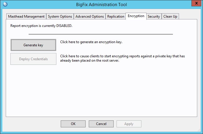 This is useful if the reports contain confidential information. You can use this tab to generate a new encryption key or to disable encryption altogether.