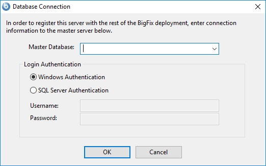 Note: You can also select a remote database hosted on a different computer. In this case ensure that the computer you are installing BigFix on can resolve the hostname of the remote server where the database resides. For additional information see Installing a server with remote database.