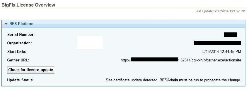 Site certificate update detected, BESAdmin must be run to propagate the change. - Go to the BigFix server