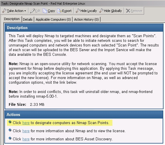 Click the Designate Nmap Scan Point – Red Hat Enterprise Linux Task. Click the first Actions box link to designate Nmap Scan Points.1