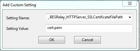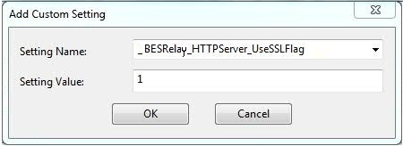- Look for _BESRelay_HTTPServer_UseSSLFlag setting. If it exists, do not create a second one, but edit its
