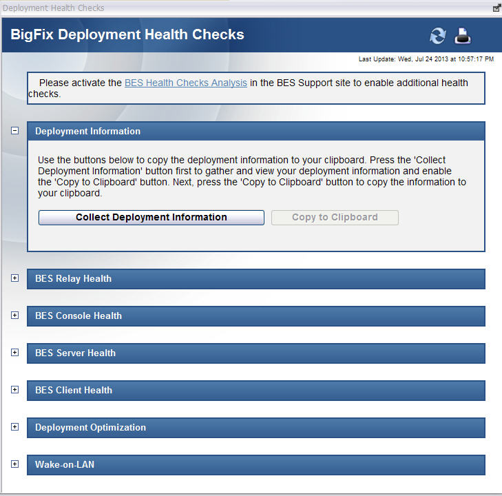 Use the Deployment Health Checks Dashboard and the Deployment Overview Dashboard to manage and monitor the health of your BigFix environment.