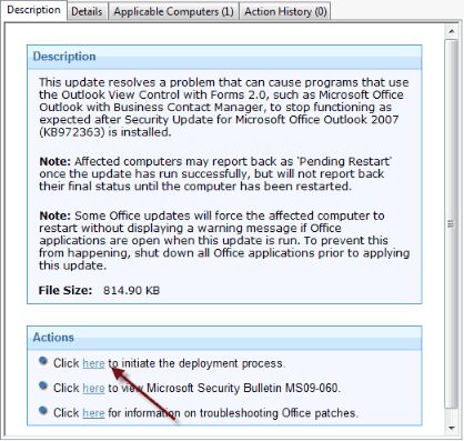 - When you supply your password, the Fixlet action is deployed throughout your network, and is applied specifically to each computer that needs it, subject to any filters you put in place.