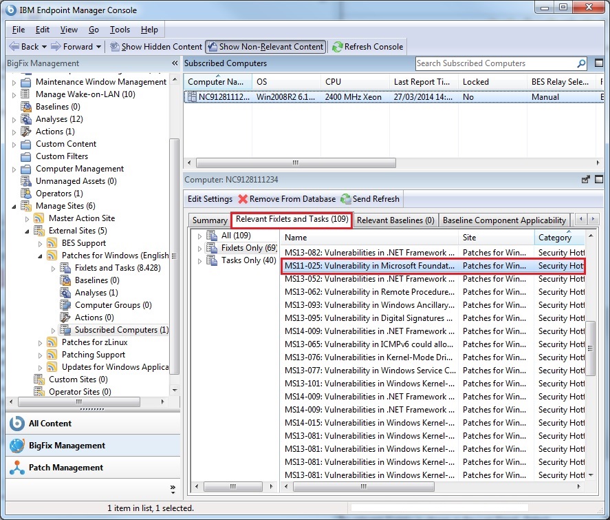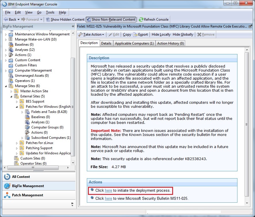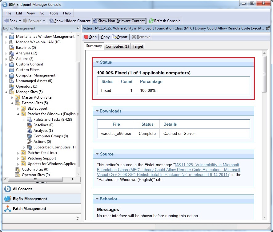 - After the vulnerability is removed the client does not need to apply again the Fixlet and the Fixlet is marked as not-relevant for the client.