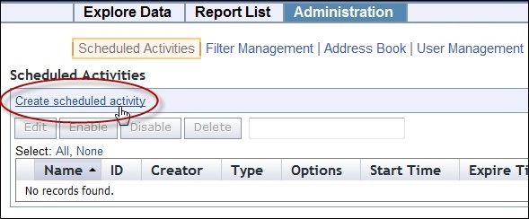 - The Activity Report section is where you select the report you want to schedule, as well as its format. From the pull-down menu, select the report you want.