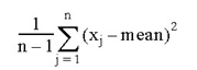 where the x's are the samples, n is the number of samples, and mean is the average of the distribution.