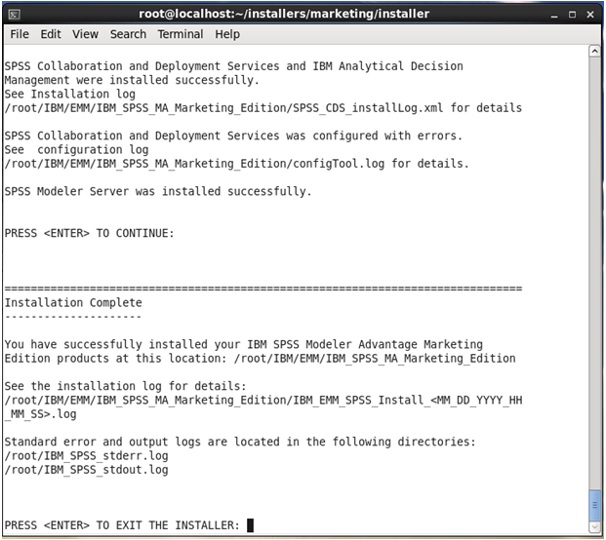 - Be sure to copy the IBM SPSS Modeler Advantage Enterprise Marketing Management Edition install packages in the installers directory.