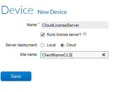Enter a Name for your Device and select “Runs License Server”. For Server Deployment select “Cloud”. Later HCL will add support for Local Server. Then enter a Site Name that suits your organization.