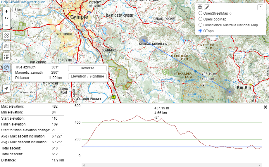Advanced functionality Measure bearing and line of sight You can view an bearing and distance by using the button Click on and click on the first position on the map, then the second position. To view the elevation and/or sightline click on