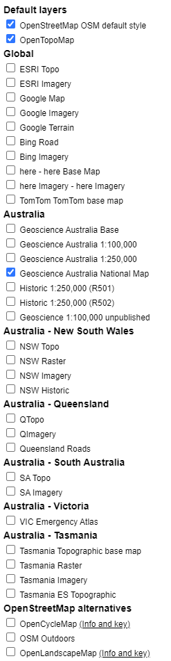 The default map is Open Street Map. You can change the map layer using the Map Layer dialog on the top right of the browser window.