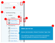 - Create a Folder: Click this icon to create a new folder where you can save your report, graph/chart, or dashboard.
