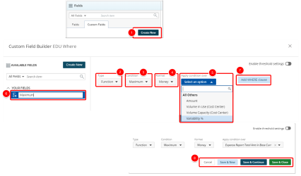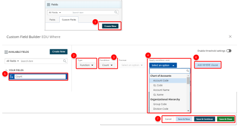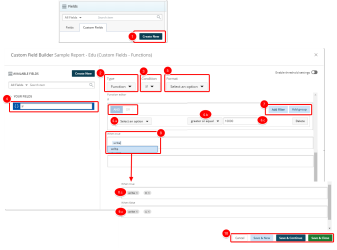 - Save & Close to save the custom field and then close the Custom Field Builder. You will be redirected to the Report Editor screen where the newly created custom field(s) can be used in a report or graph/chart.