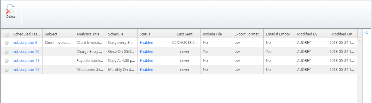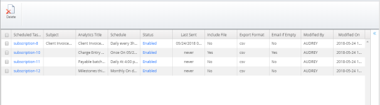 Note: If you have sufficient permission, you can view the subscriptions of all users. Otherwise, this page displays only the subscriptions that you own.