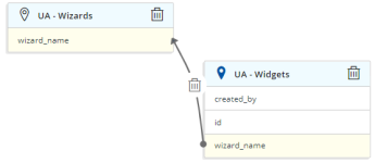 - Drag and drop one field onto another field to make a connection. A connection line displays.