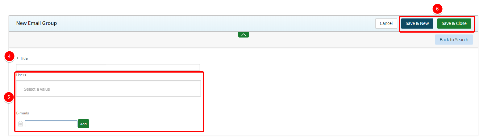 - Click New. The New Email Group page displays.