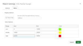- High: Type a start and end range for the high value and click the color to select a color for the high range.