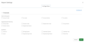 - Show in Upland WorkCenter: Select whether or not to display the report or graph/chart in Upland WorkCenter.