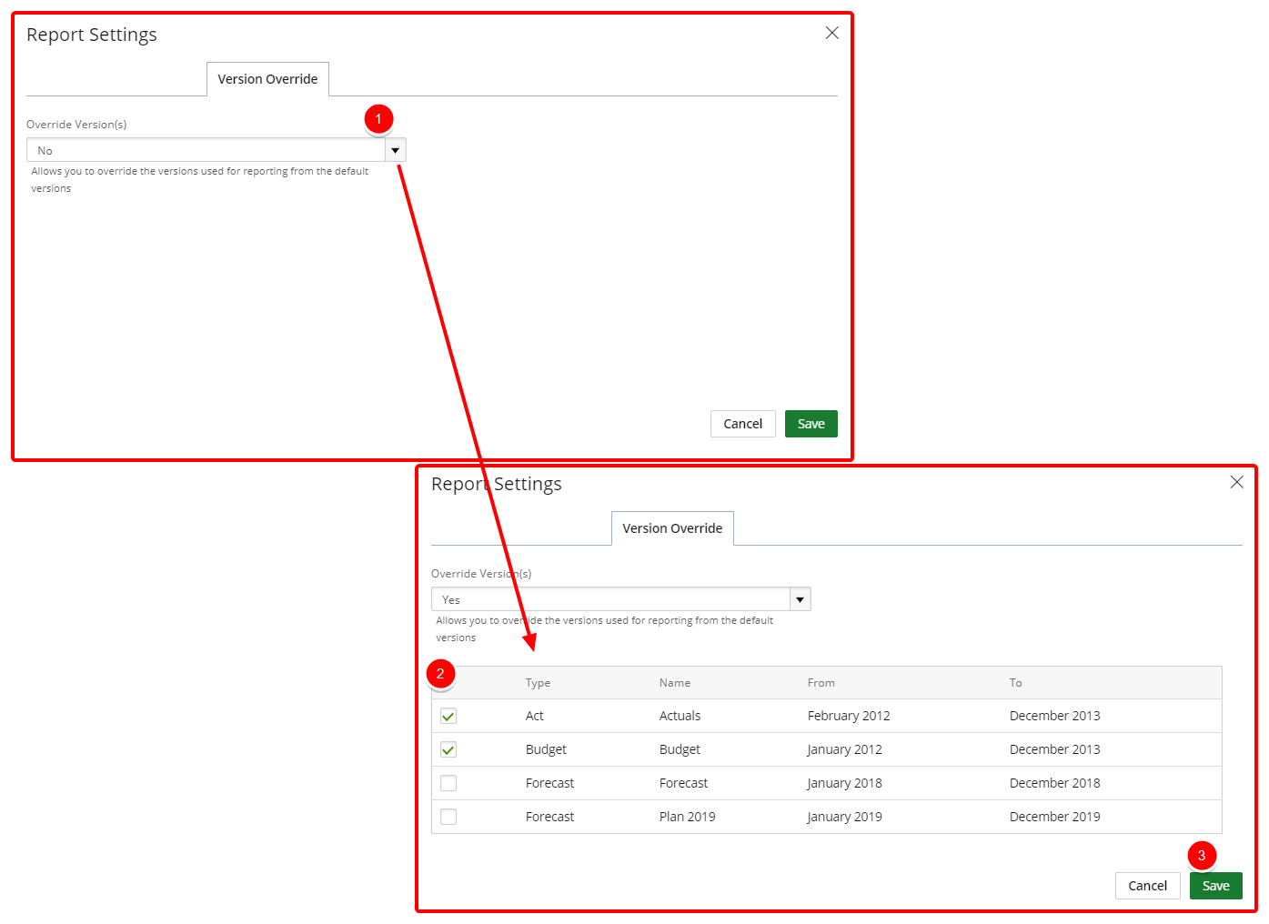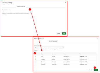 - Select Yes from the Overrride Version(s) drop-down menu. A list of default versions display.