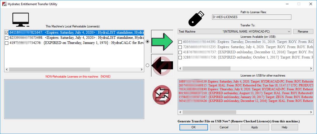 over to “Licenenses on USB for other machines”. The intended DESTINATION Machine