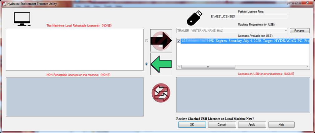 “C:\HES\Common\Entitlement Transfer” folder. Your license should now be in “Licenses