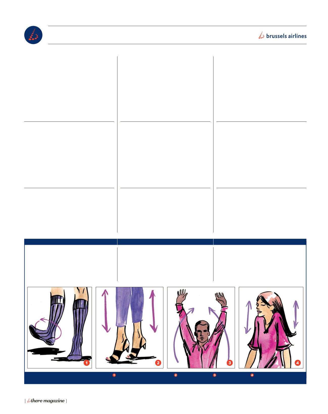 Stretchand rotateyour anklesand legswhile seated . Flexand stretchyour calfmuscles , aswell as your arms , shouldersandneck periodically.