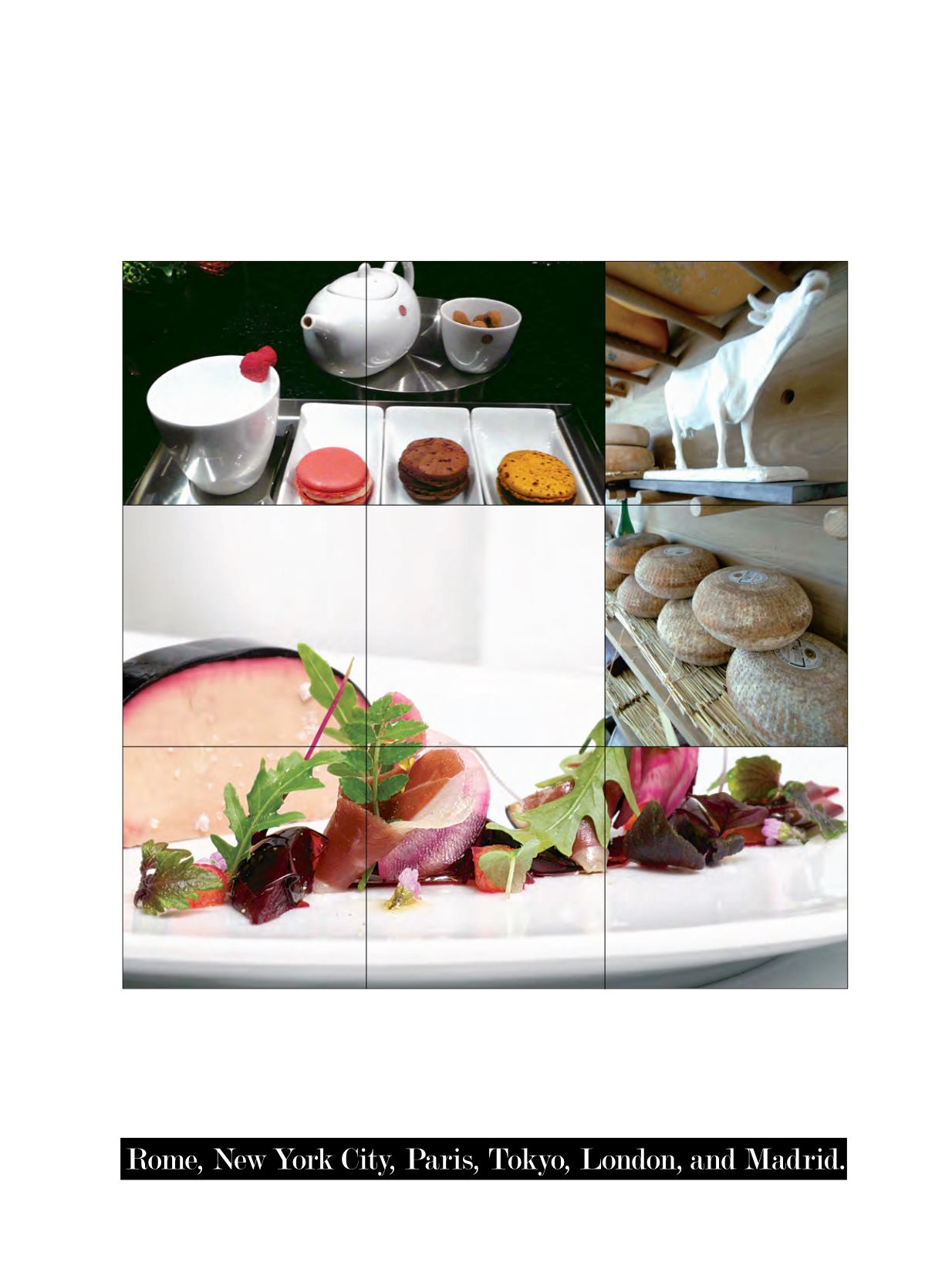 at La Fromagerie in London; foie gras, hibiscus-beet gelée, and blood oranges at Corton in New York City