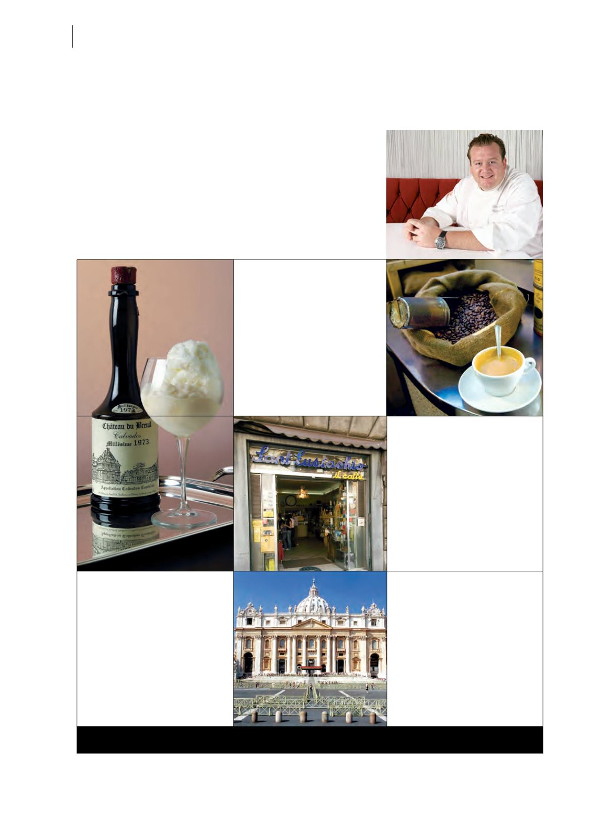 Clockwise from top: chef Michael White; coffee at Café sant’eustachio; touring st. Peter’s basilica in rome; il sorbetto al Calvado from il