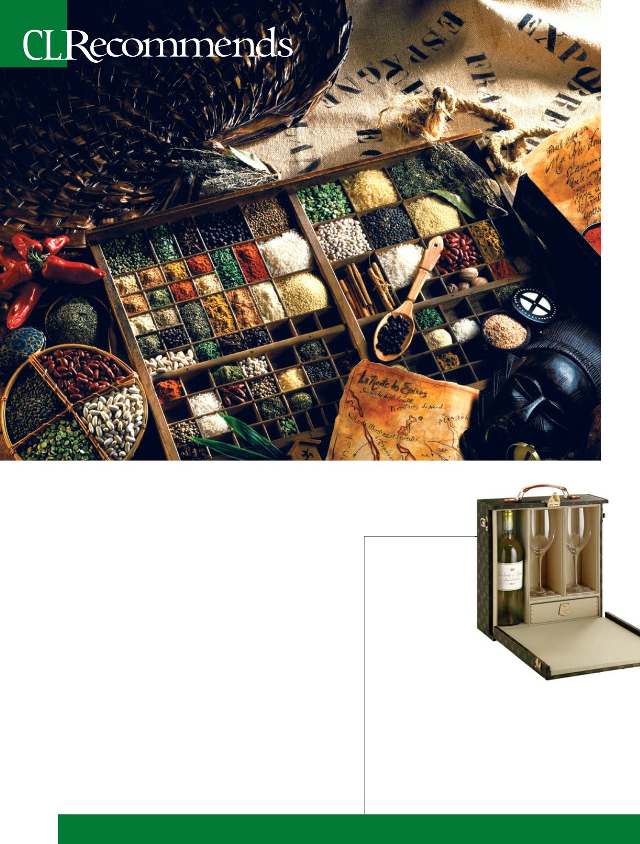 exoticoils, dried fruits, andcaviar.Healsoheads to