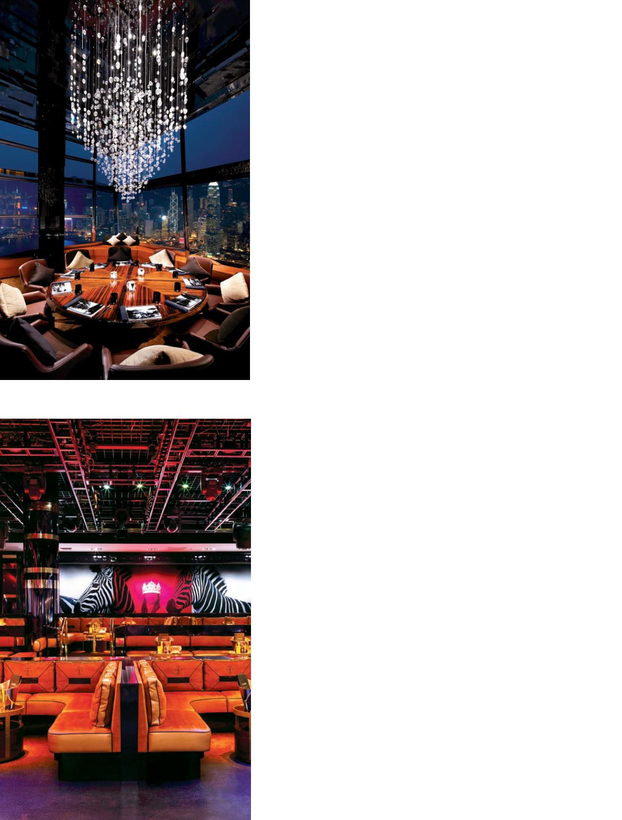 chandeliers, and tufted leatherbanquettesandwalls