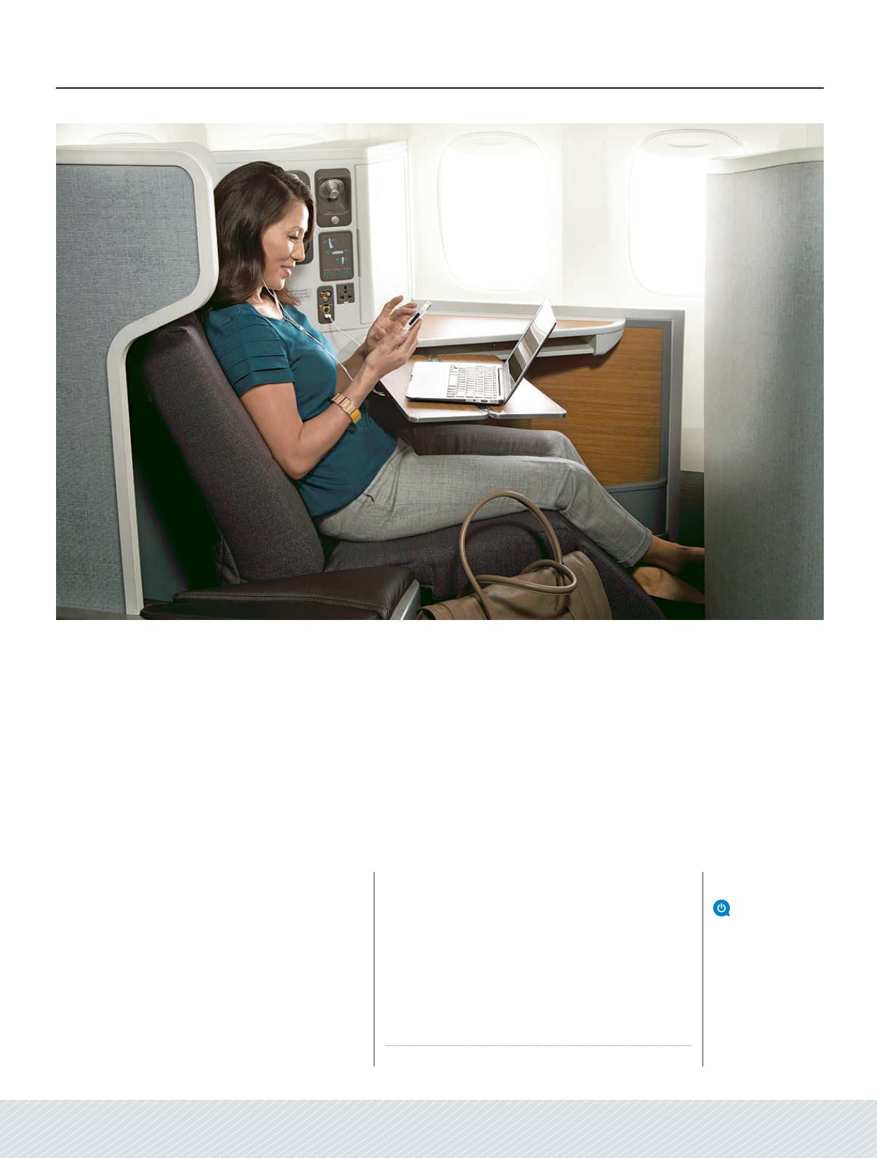 entertainment, power outlets andgenerous personal space