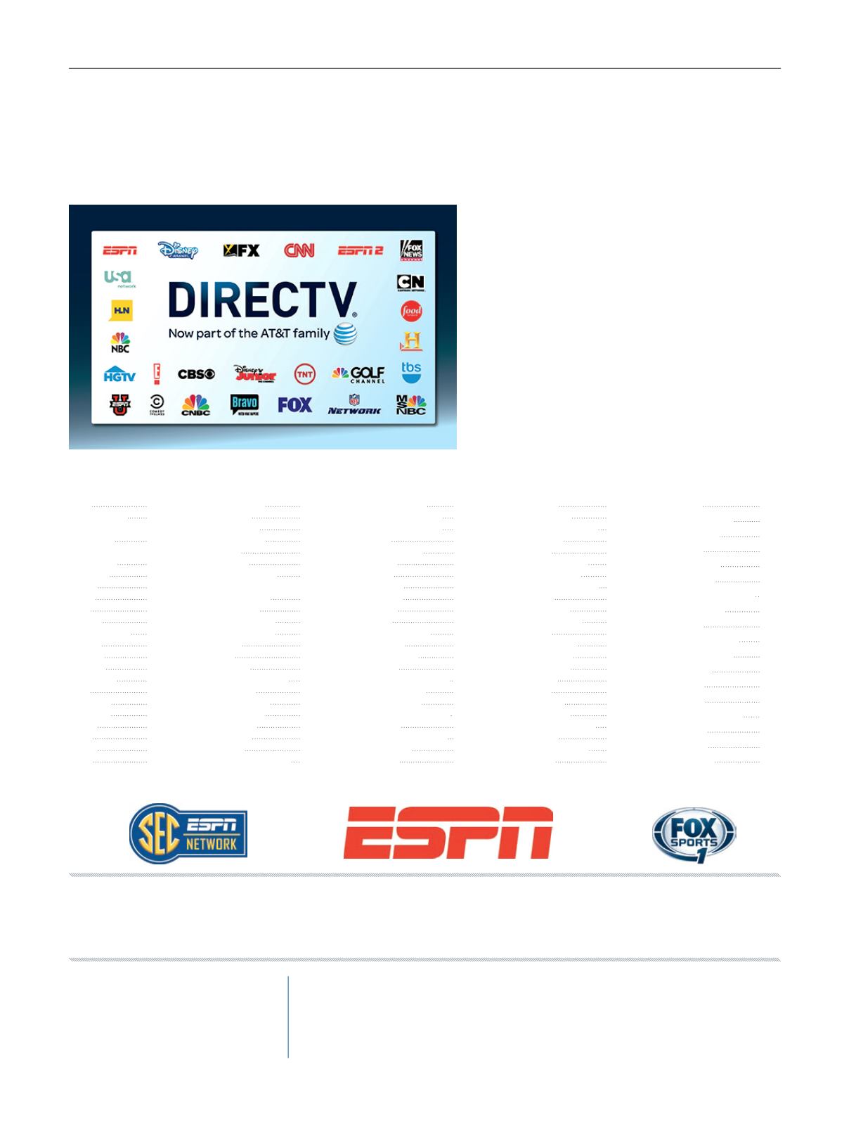 Exact channel numbers and programming schedules are subject to change. DIRECTV® service is not available on flights outside the