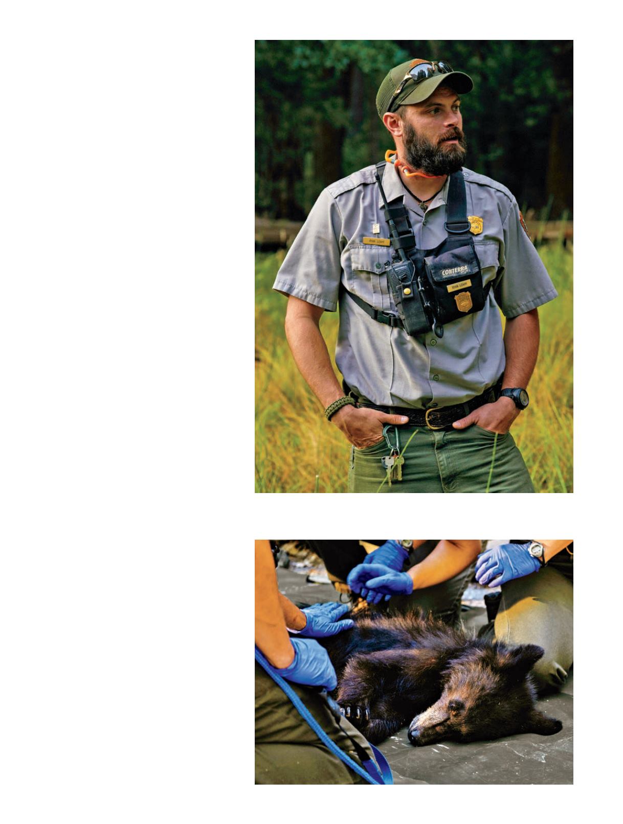 THEAMERICANBLACKBEAR; BELOW: RANGERSCOLLECTINGBLOODANDHAIRSAMPLESFROM