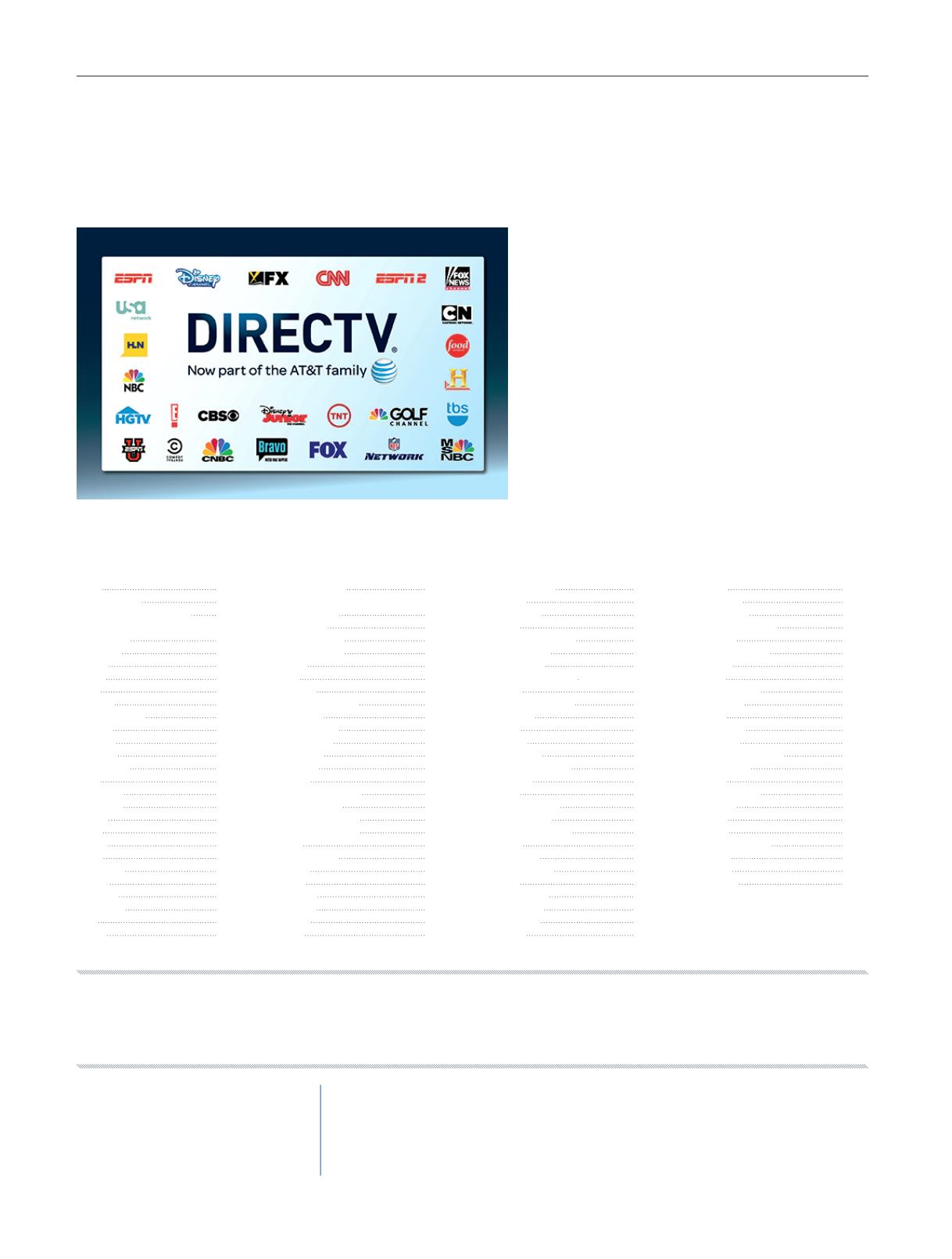 Exact channel numbers and programming schedules are subject to change. DIRECTV® service is not available on flights outside the