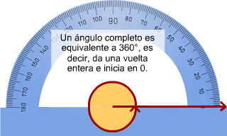 Usamos el transportador para medir ángulos en grados. Al medir un ángulo, se cuenta en sentido contrario a las agujas del reloj, siendo considerado positivo en este caso.