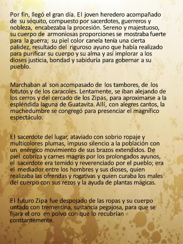 espléndida laguna de Guatavita. Allí, con alegres cantos, la