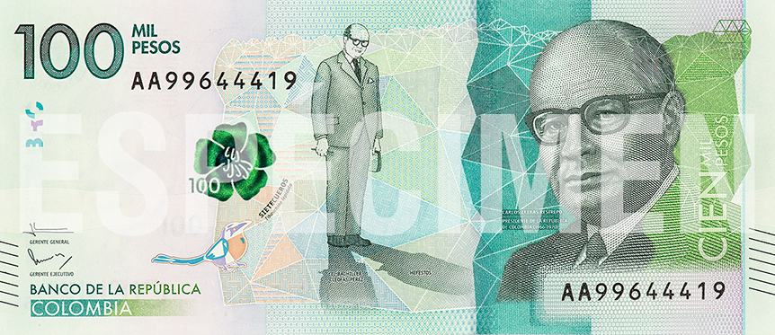 En el anverso se aprecia la imagen del presidente Carlos Lleras Restrepo (en cumplimiento del artículo 10 de la Ley 1167 de 2007) junto con el pájaro barranquero y la flor del sietecueros. En el reverso se resalta el Valle de Cocora en Quindío y la palma de cera, nuestro árbol nacional.
