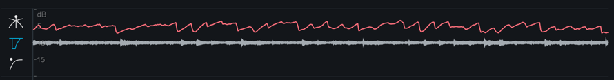 この画面では波形表示と、ダイナミクス処理により適用されたゲイン削減を時間経過と共に表した形跡を視認することができます。