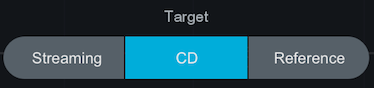 - ストリーミングオプションのターゲットラウドネスのデフォルトは-14 LUFSに設定されています。このターゲット値は、一般的なストリーミングサービスにより使用される典型的なラウドネス値に基づいています。