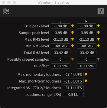 The Waveform Stats window will update to display information about your active track and can remain open as you switch between track tabs.