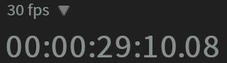 ソースタイムコード (n fps): クリップの大本の時間から始まる時、分、秒、フレーム表示のタイムコードカウンター。n(タイムコードのフレームレート)の値は詳細設定ダイアログボックス内のMiscタブにあるTime scale frame rateメニューの設定により異なります。 |
