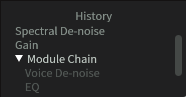クリップゲイン、またはモジュールチェーンを使用した場合、一連の編集作業は折りたたみ式のフォルダに格納されます。