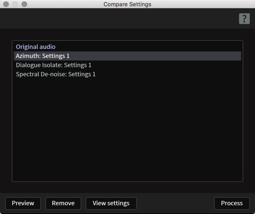 - Preview(試聴): リスト上の設定値が反映された処理後のオーディオを試聴する際はPreviewをクリックします。