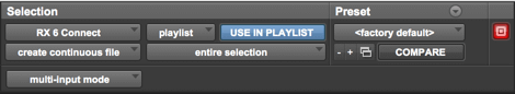 - Create continuous files(連続するファイルを作成): オリジナルのオーディオファイルを非破壊的に処理します。RXから送られるオーディオを含む新規オーディオファイルが、連続する単一のクリップとして統合されて作成されます。