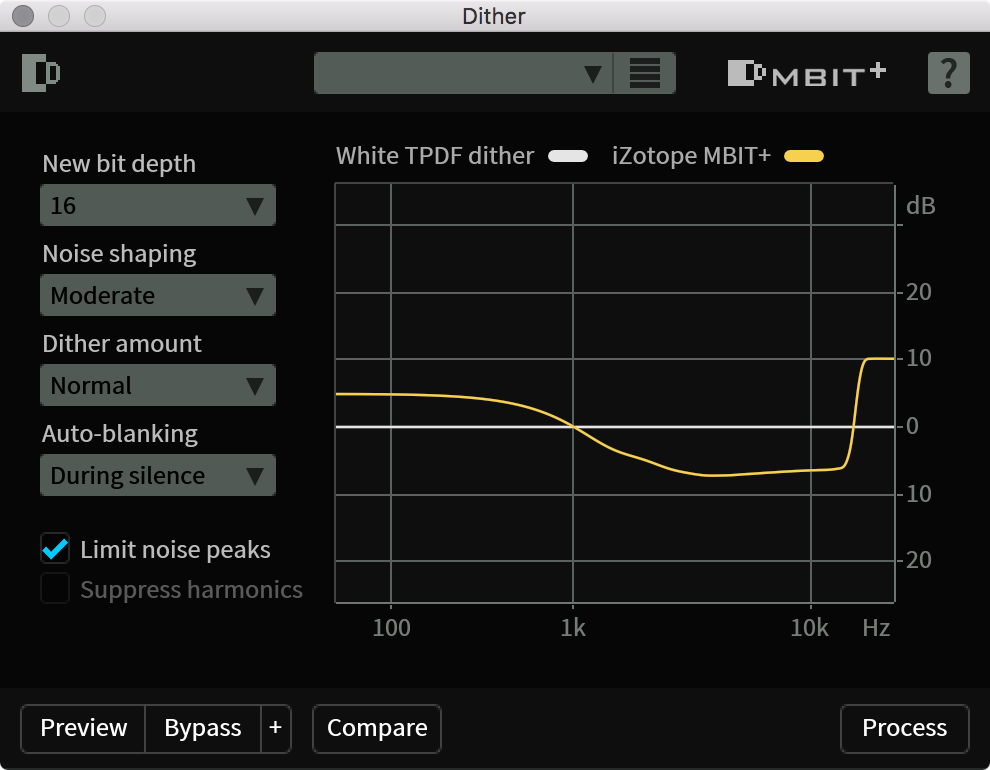 - Dither(ディザー)モジュールに、ファイルの中で既にディザー/クオンタイゼーション処理のされた箇所に対して自動的にディザー出力をミュートする自動ブランクモードが追加。