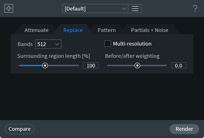 “Replace(置換)"、“Pattern(パターン)"、“Partials + Noise(パーシャル+ノイズ)“のタブではすべて水平モード が指定され、それ以外のオプションは表示されません。
