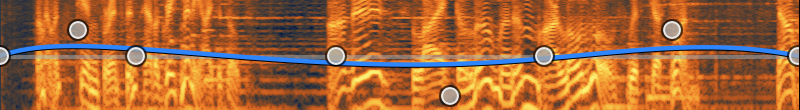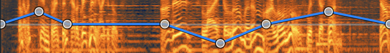 スペクトル・パネル上に重なって表示される青い線は時間伸縮比率の形成曲線を表示しています。有効な選択範囲内にある この曲線に操作点を追加して調整を行うことができます。