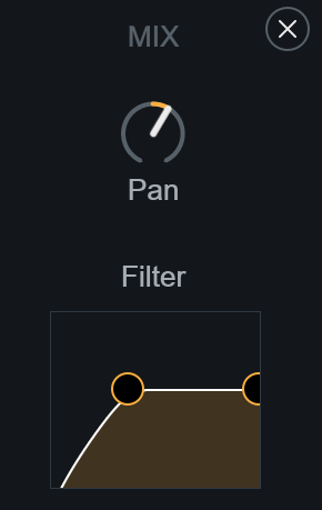 You can assign parameters to the x-axis by selecting them from the “X” dropdown menu. Moving the X/Y pad node horizontally will increase or decrease the selected parameter’s value. The left edge of the X/Y pad represents the minimum value of the control, the right edge represents the maximum value.
