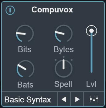 | Biovox Lvl | Compuvox Bytes | Distort Tone | Polyvox Humanize | Talkbox Lvl |